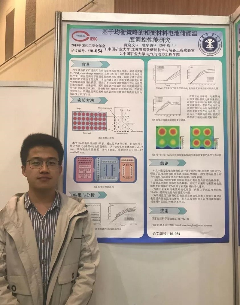 全国储能科学与技术大会是我国储能领域的重要学术会议,每年召开一次。储能实验室饶中浩教授做了题为“相变储热过程传热传质强化研究进展”的邀请报告,刘臣臻老师和硕士生庞晓文分别做了题为“氯化钙-氨工质对热化学储热过程传热特性研究”和“基于均衡策略的相变材料电池储能温度调控性能研究”的墙报展示,向与会代表展示了储能实验室在热管领域的最新研究成果。